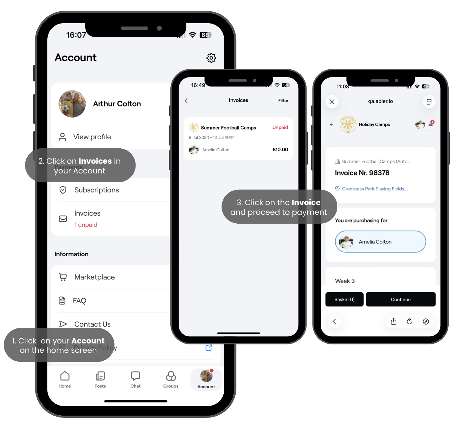 If you have an unpaid invoice , you can pay it either through the Abler app or via a browser on your computer or mobile phone.